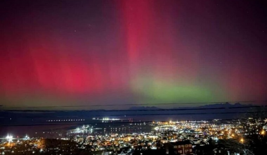 Ushuaia disfrutó este viernes por la noche de un espectáculo increíble en el cielo, producto de una fuerte tormenta solar que provocó la aparición de las auroras australes que lo tiñeron de rojo.