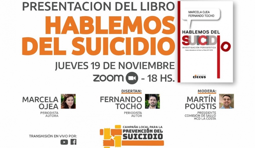 Desde las 18 horas, en un encuentro virtual impulsado por Martin Poustis, actual presidente de la Comisión de Salud en el Concejo Deliberante, se presentará el libro “Hablemos del suicidio”; una investigación periodística en la que, los comunicadores Marcela Ojea y Fernando Tocho, invitan a romper el tabú en torno a un problema de salud pública que necesita ser correctamente abordado por el Estado y el conjunto de la comunidad.