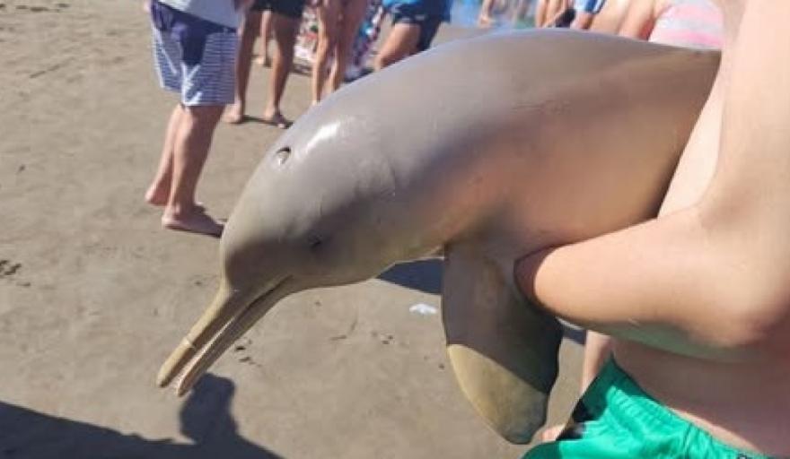 En un triste episodio que recuerda casos de veranos pasados, un delfín perdió la vida en la playa de Mar del Tuyú luego de ser manipulado por un turista. El hecho ocurrió este miercoles , cuando el animal apareció en la orilla y fue levantado en brazos por un visitante, quien lo rodeó de curiosos.