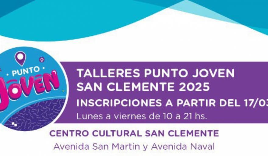 La Municipalidad de La Costa informa que el próximo 17 de marzo comenzarán las inscripciones para los talleres 2025 en el Punto Joven de San Clemente del Tuyú, ubicado en el Centro Cultural de la localidad, en Av. Naval y Av. San Martín.