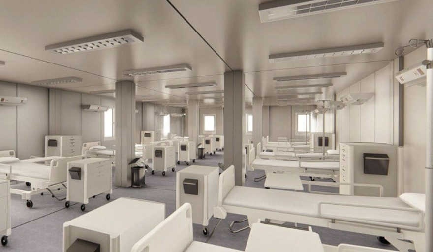 “Este Hospital Modular tiene 600 metros cuadrados, vienen 6 módulos armados que son los módulos sanitarios, de cocina y baños, que se acoplan y se van construyendo en el lugar”, señaló.