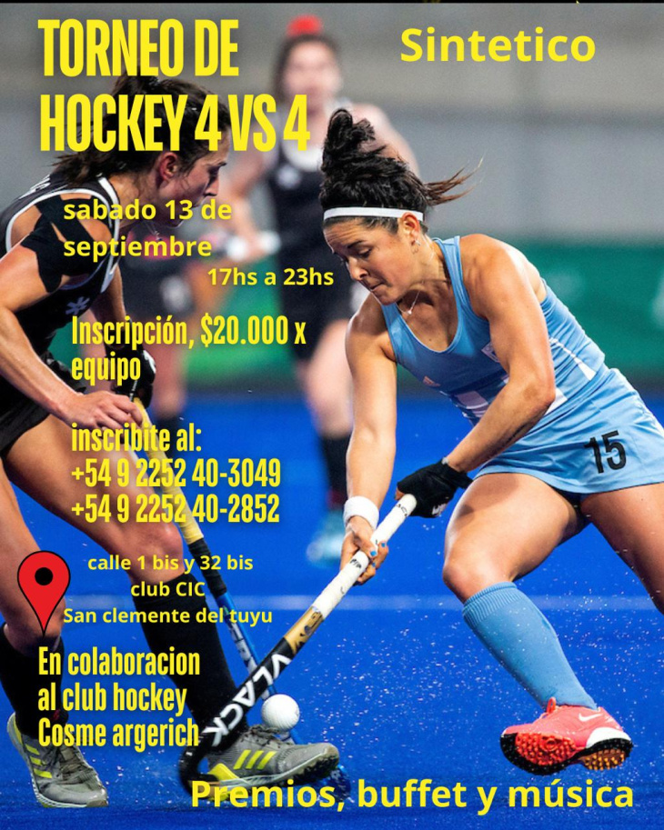 El próximo sábado 13 de septiembre, San Clemente del Tuyú será sede de un Torneo de Hockey 4 vs 4 Sintético, organizado por el Club Hockey Cosme Argerich.