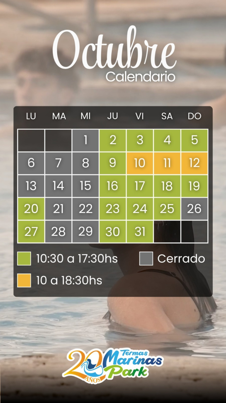 Les compartimos la modalidad de apertura que tendrá Termas Marinas Park durante el mes de octubre.