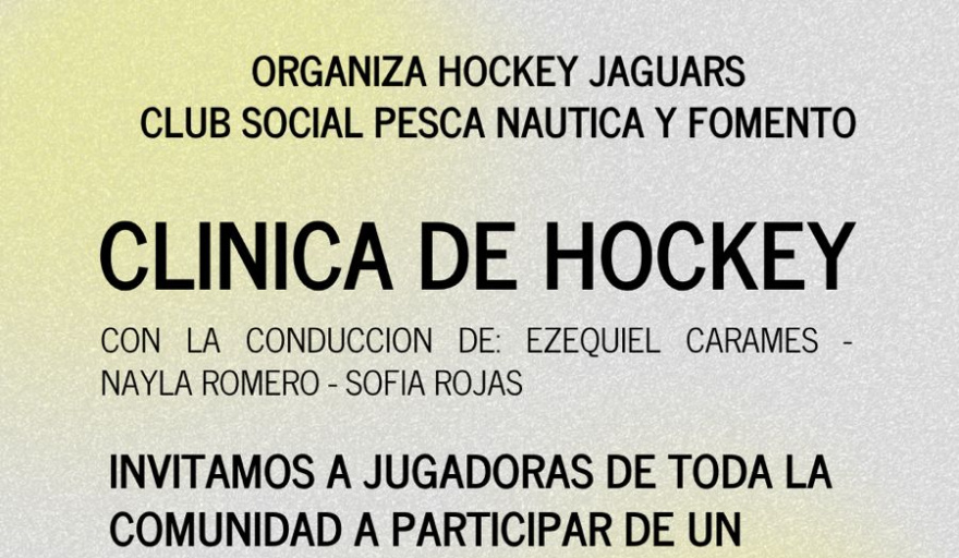 El próximo viernes 10 de octubre, el Club Social Pesca Náutica y Fomento será sede de la primera Clínica de Hockey en San Clemente del Tuyú, organizada por el equipo Hockey Jaguars. La propuesta invita a jugadoras del club y de toda la comunidad, desde los 8 años en adelante, a formar parte de una jornada de entrenamiento técnico y táctico conducida por Ezequiel Caramés, Nayla Romero y Sofía Rojas, profesionales con experiencia en el deporte.