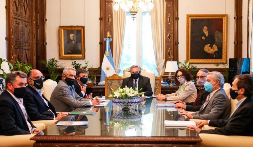 El presidente Alberto Fernández y los integrantes de la Mesa de Enlace de las Entidades Agropecuarias se comprometieron hoy a analizar la estructura de costos en las distintas cadenas del sector para asegurar a los argentinos el acceso a los alimentos, sin tener que recurrir a subas de retenciones a las exportaciones agrícolas ni otros instrumentos de esa naturaleza.