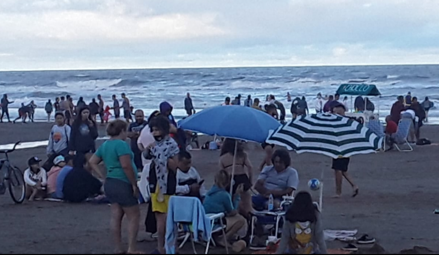 Los más pequeños, como de costumbre, sacaron a relucir todo el bajaje de plasticos playeras y la demanda a sus familias de ayuda para construir castillos, no se hizo esperar. Se vivió un clima festivo por la posibilidad de disfrutar lo que quedaba del día frente al mar, luego de cientos de kilómetros recorridos para llegar a la costa bonaerense.