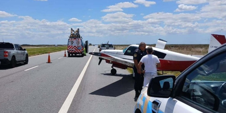 Automovilistas que transitaban por la zona no ocultaban su asombro ante la escena: una avioneta detenida en medio de la ruta, en una postal tan inusual como impactante, en pleno camino hacia la Costa Atlántica.