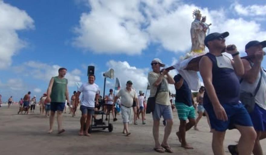A lo largo del trayecto, la peregrinación despierta reacciones espontáneas entre quienes disfrutan de la playa. Turistas y vecinos se acercan, sacan fotos, reciben estampitas y se suman por algunos metros al recorrido. “La gente responde con alegría y sorpresa. Muchos sienten cercana la presencia de la Virgen en sus vidas”, señaló.