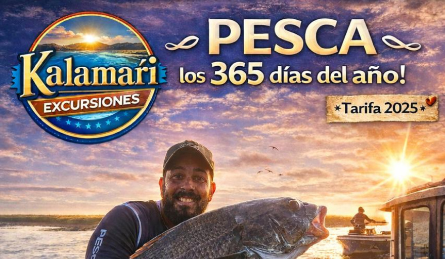 Además, Kalamarí mantiene su propuesta estrella de pesca deportiva durante todo el año, con salidas los 365 días. Las excursiones se realizan en una embarcación habilitada por la Prefectura Naval Argentina, cumpliendo con todas las normas de seguridad marítima y con controles mensuales. Las salidas incluyen guía de pesca profesional certificado, seguro por pasajero y equipo completo de pesca y carnada.