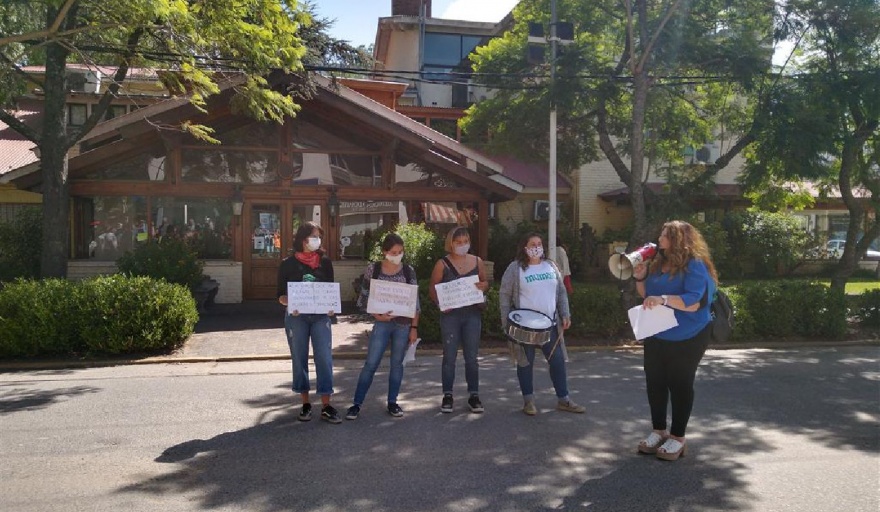 Este lunes agrupaciones feministas y vecinos autoconvocados se concentraron frente al edificio municipal para reclamar el esclarecimiento de los hechos, pedir la interpelación de Yeza, la renuncia de los responsables del área de Desarrollo y la devolución del dinero a las familias perjudicadas.