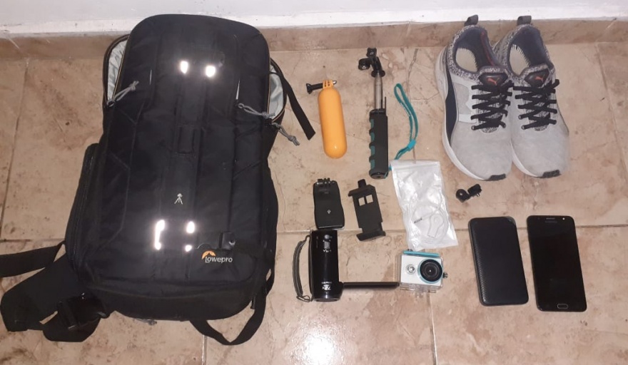Durante el operativo se logró incautar en la vivienda mencionada, en relación a la presente IPP, una mochila de color negro marca Lowepro con dos tiras en los costados de color gris, cámara deportiva (tipo Go Pro) marca Xiaomi Yi con la totalidad de los respectivos accesorios, uno de color amarillo, un par de zapatillas marca Puma con la garra lateral de color negro y cordones negros, talle 39, cámara filmadora marca Panasonic, palo de selfies de color gris con mango negro y verde y 2 teléfonos celular, marca Samsung modelo J7 Prime color negro y otro marca One plus modelo T6 de color negro.