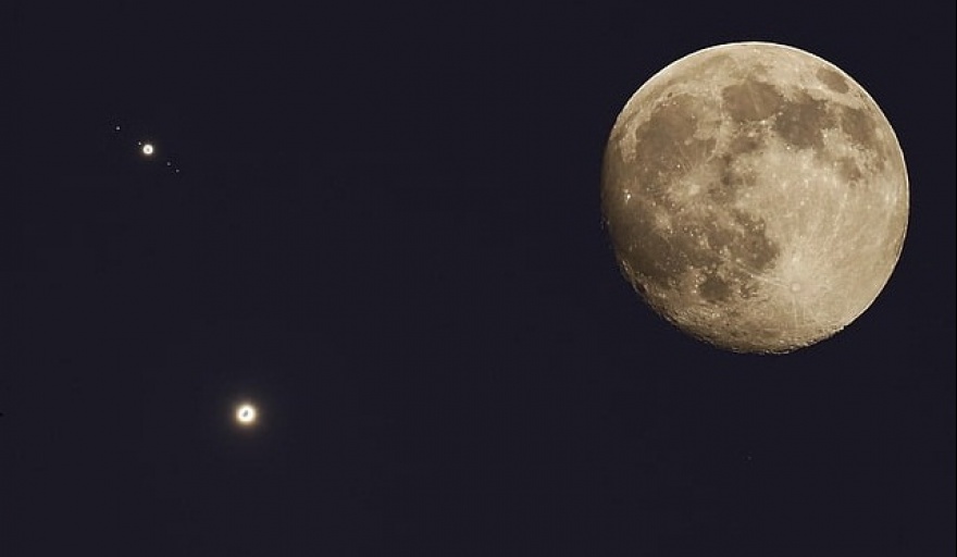 Apenas dos horas después de que Régulo se vea flanqueado por Marte y Venus, quienes esta vez dirijan sus miradas hacia el horizonte Sureste, verán a la Luna prácticamente llena que tendrá en su diagonal superior izquierda al planeta Saturno distinguible por su clásico color miel.