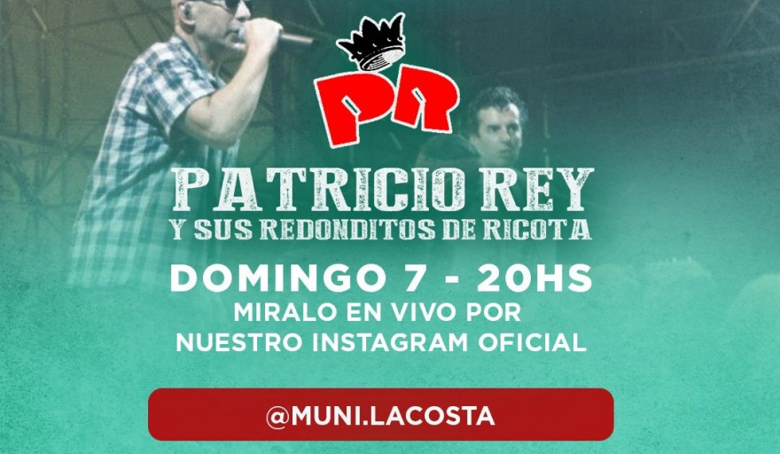 En esta oportunidad, este domingo 7, desde las 20.00, se presentará la banda local 100 años de perdón, con un tributo a Patricio Rey y sus Redonditos de Ricota. La propuesta cultural impulsada por la gestión del intendente Cristian Cardozo se desarrollará en el Espacio Multicultural de San Bernardo, ubicado en San Juan 2834. Con entrada gratuita, quienes deseen presenciar el show deberán reservar su lugar con anticipación al (02246) 43-3088, en el horario de 9.00 a 14.00. A su vez, el espectáculo será transmitido de manera online a través del Instagram de la Municipalidad de La Costa: @muni.lacosta