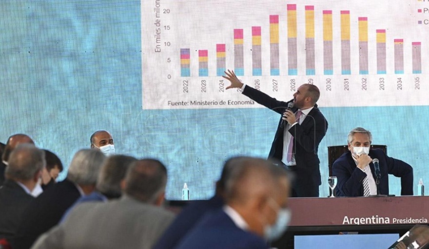 Para el ministro, los compromisos de deuda plantean una "situación absolutamente insostenible" al asegurar que el sector público y el sector privado en la Argentina deberán enfrentar vencimientos por US$ 28.000 millones en 2022 y US$30.000 millones en 2023, el doble del superávit comercial del país.