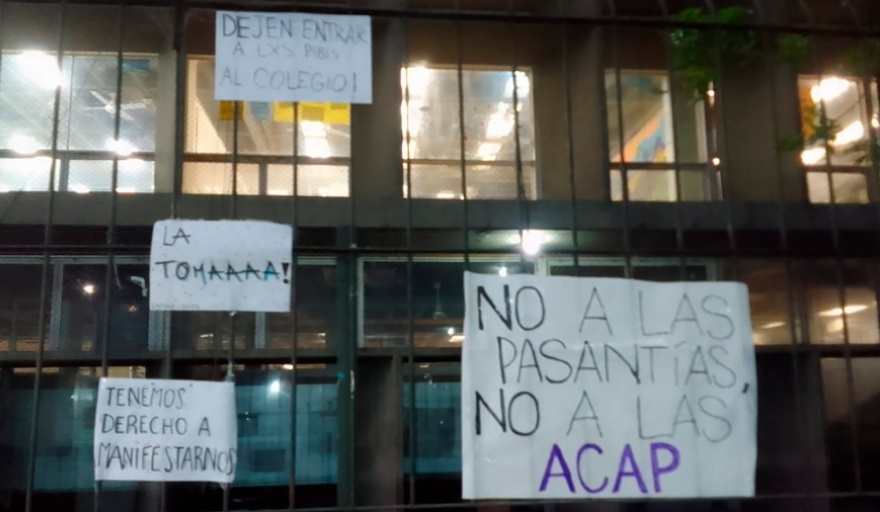 También se encontraba tomada la escuela de Comercio Carlos Pellegrini, la primera institución que no depende de la Ciudad de Buenos Aires sino de la Universidad de Buenos Aires (UBA), que se sumó anoche a la medida para exigir "viandas de calidad, en cantidad y para se les dé una mesa de diálogo a les estudiantes perjudicades por el ACAP (Actividades de aproximación al mundo del trabajo y a los estudios superiores)".