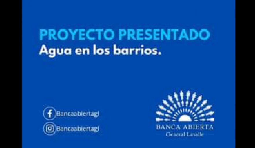 Ante este situación, "Banca Abierta General Lavalle" presentó un proyecto para que la municipalidad coloque tanques de agua en los barrios de la ciudad, arbitre los medios para que los mismos se mantengan limpios, y sean recargados de manera continua para garantizar el flujo del suministro correspondiente y hacer realidad el Proyecto presentado oportunamente -del cual dio cuenta Faro Noticias- "Agua en los barrios".