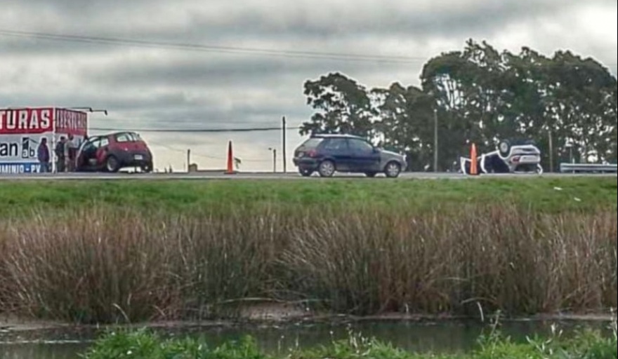 Un accidente vial ocurrido el lunes en el kilómetro 320 de la Ruta 11, cerca de Costa Chica, involucró a un Volkswagen Gol Trend y un Ford Ka que colisionaron en la dirección hacia el norte. Como resultado del impacto, el Gol Trend volcó en el cantero central, y ambos conductores fueron llevados al hospital por personal médico. En la escena del accidente, participaron Bomberos Voluntarios, la Policía y AUBASA."