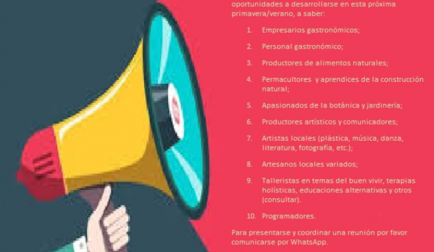 El Balneario Costa Maluco convoca a diferentes actores de la comunidad para participar en proyectos u oportunidades a desarrollarse en esta próxima primavera/verano y año 2024, a saber:
