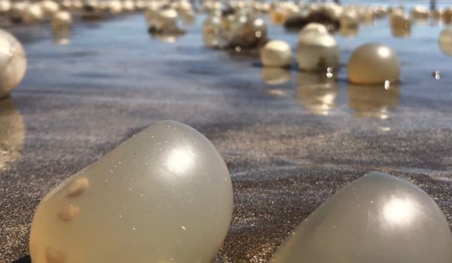 En las playas del Partido de la Costa, se avistó una gran cantidad de ovisacos, cápsulas que resguardan los huevos del Caracol Negro. Aunque comúnmente se confunden con huevos de tortuga, estos pequeños sacos son una parte esencial del proceso reproductivo de esta especie endémica de la región.