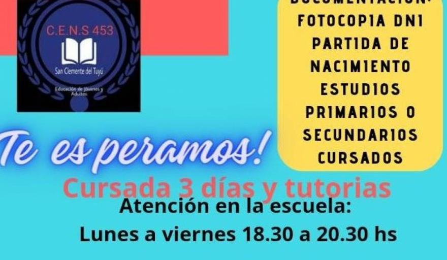 La inscripción para aquellos que deseen completar sus estudios secundarios se encuentra abierta en el Centro Educativo N° 453 de San Clemente del Tuyú. Con orientaciones en Ciencias Sociales y Gestión y Administración, esta institución brinda la oportunidad de retomar los estudios de manera accesible.